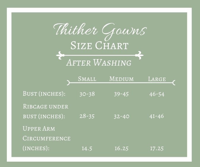 ***Please note that the gowns are NOT pre-washed, so it will so it will have a slightly larger fit when you first receive it, but it will shrink 1% in length and 3% in width after washing. {See photos for the measurements of the gowns AFTER they have been washed.}