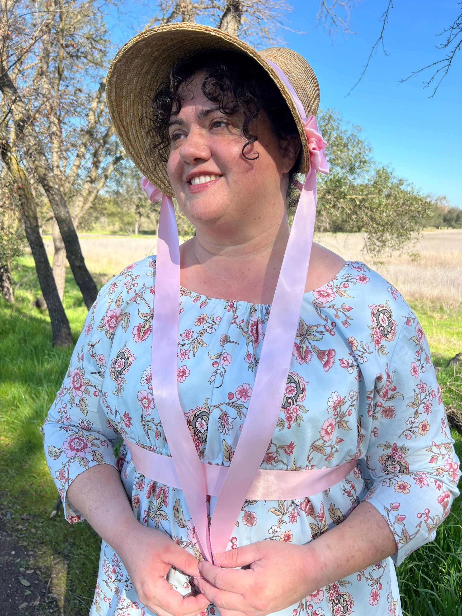 Step into Jane Austen's world with our Cassandra print gown, a design with Jane's dearest friend and sister in mind – perfect for country walks or tea with one's dearest friends!