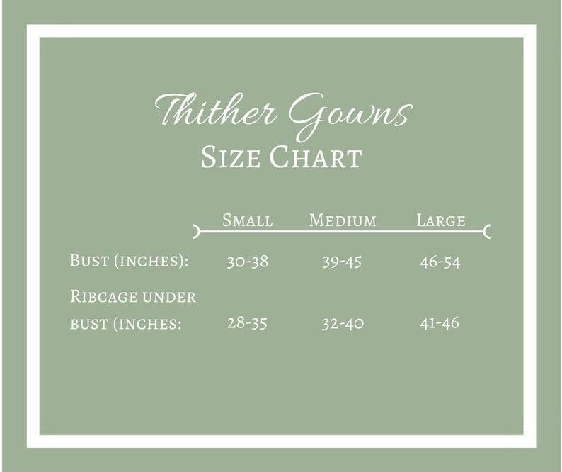 As with all of our gowns, the neckline and waistline are designed with drawstrings. This gown is available with puff, 3/4, or long sleeves, and in several skirt lengths.