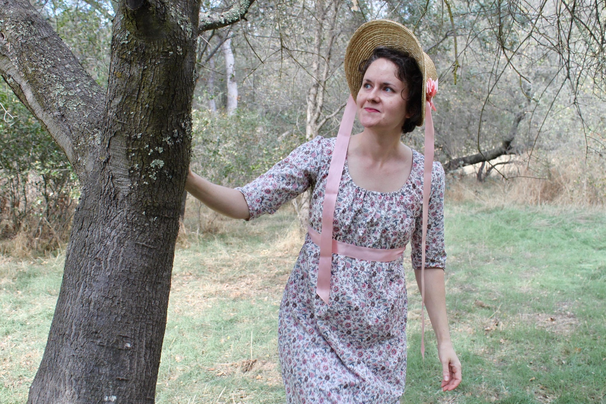 Step into the world of the Dashwood's Devonshire with our Elinor print gown – perfect for walking through Norland's walnut grove or picnics at Delaford!