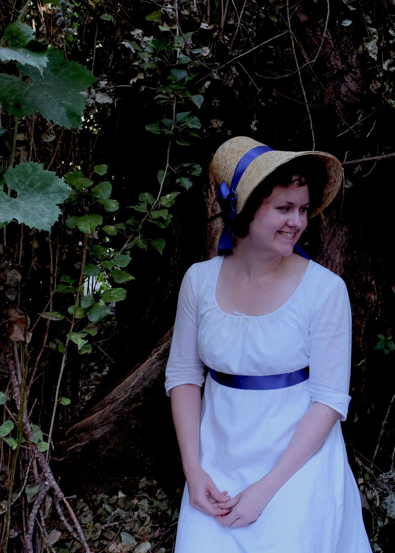 The Regency comes to life with our Emma Poke Bonnet! This neatly woven straw bonnet is just the thing to wear on a walk through Highbury for tea with an old friend.