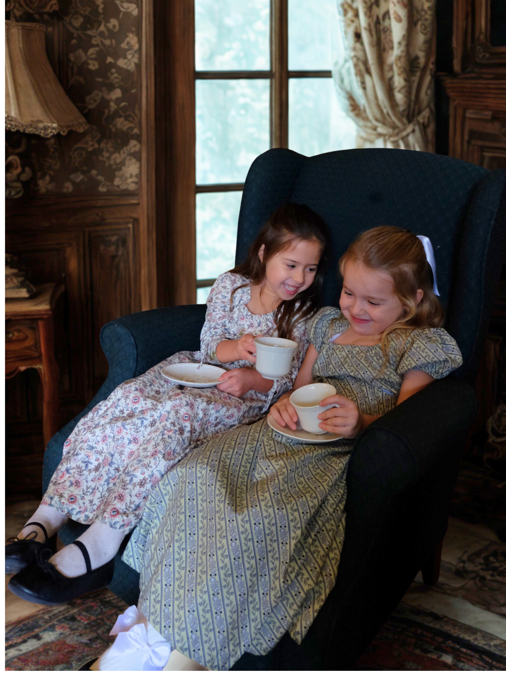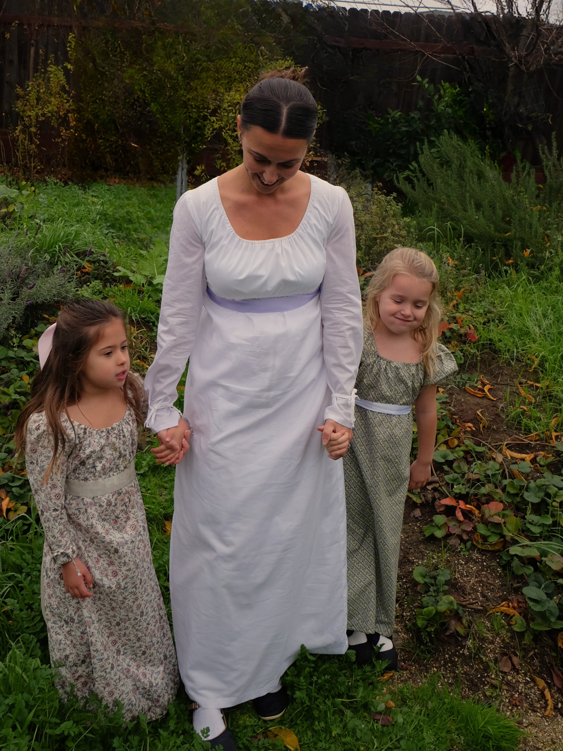 It's a Thither Regency gown for girls! Made from our quality cotton, these dresses have the same design as our ladies' gowns, but with younger ladies in mind. Whether she likes to dress as Jane Austen heroine or wants a pretty dress to wear for any occasion, our girls' Regency gown is the perfect thing!