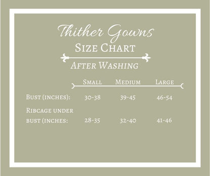 *Important Note: This dress will look its best worn over period underpinnings because the skirt has only one layer and is a somewhat thin fabric. But any long white layer underneath will be sufficient.